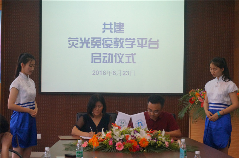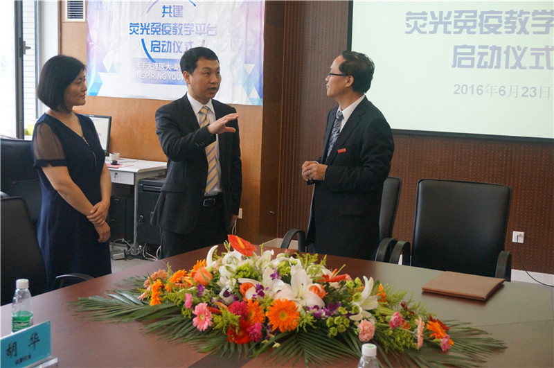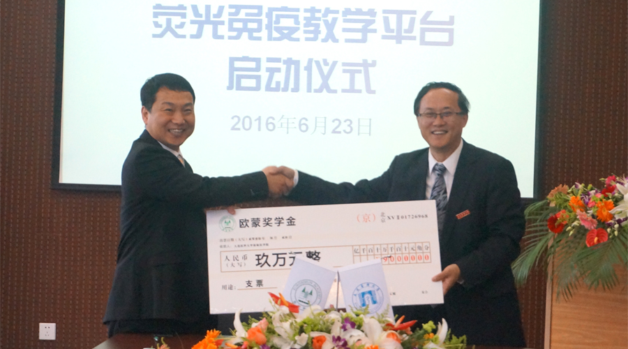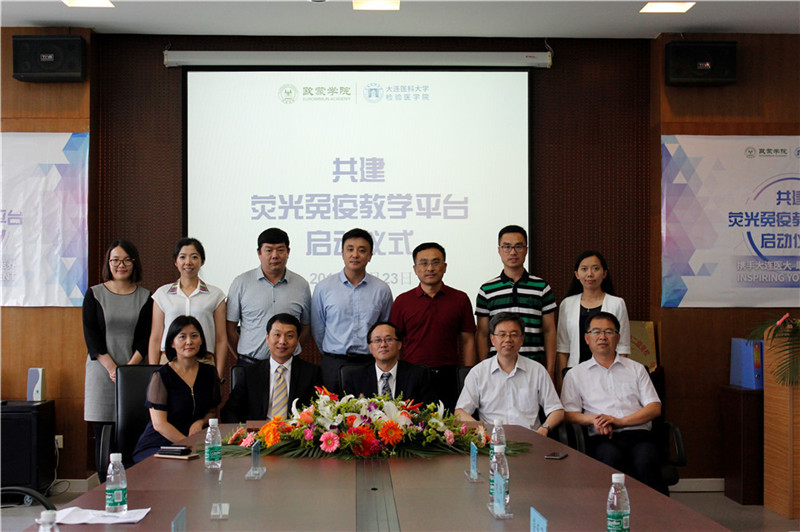 近日,歐蒙學(xué)院攜其“高校聯(lián)盟”項(xiàng)目來到大連醫(yī)科大學(xué)檢驗(yàn)醫(yī)學(xué)院,雙方在歐蒙獎(jiǎng)學(xué)金和熒光免疫教學(xué)平臺(tái)共建領(lǐng)域展開深入合作,“大連醫(yī)科大學(xué)檢驗(yàn)醫(yī)學(xué)院-歐蒙學(xué)院簽約暨共建熒光免疫教學(xué)平臺(tái)啟動(dòng)儀式”也于2016年6月23日上午隆重舉行。