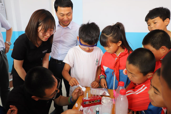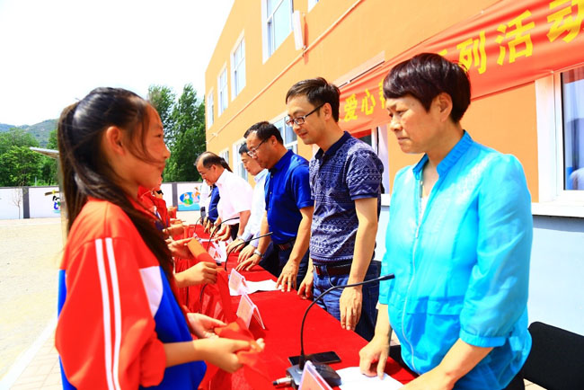 與志愿者們共同見證主題為 “追夢同行 預(yù)見未來”的愛心幫扶公益行動在葫蘆島市南票區(qū)村小落地生根的領(lǐng)導(dǎo)和嘉賓有:歐蒙醫(yī)學診斷(中國)有限公司亞太區(qū)總裁李川先生、中共葫蘆島市南票區(qū)委書記郭毅同志、歐蒙醫(yī)學檢驗所總監(jiān)張欣先生、南票區(qū)政府副區(qū)長趙婧同志、中國科學院心理研究所、中國科學院大學王晶教授、南票區(qū)教育局局長樊漢權(quán)同志、中共缸窯嶺鎮(zhèn)黨委書記吳春雷同志、南票區(qū)政府教育督導(dǎo)室主任孫世俠同志、南票區(qū)全民健身指導(dǎo)中心主任馬良同志。