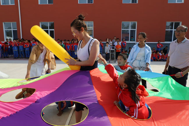 互動課堂活動結(jié)束后,一場別開生面的趣味運動會將整個活動點燃了所有人的熱情,孩子們把他們的感謝都融入其中,嘉賓和志愿者們也與孩子們?nèi)跒橐惑w,努力為自己團隊爭取勝利,現(xiàn)場高潮迭起,笑聲不絕于耳, 吶喊聲、喝彩聲回蕩在山間。