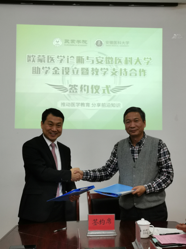 2018年12月19日,歐蒙亞太集團(tuán)總裁李川先生一行走進(jìn)安徽醫(yī)科大學(xué),筑夢學(xué)子,與安徽醫(yī)科大學(xué)簽署“歐蒙助學(xué)金”暨教學(xué)支持合作協(xié)議。安醫(yī)大教育基金會(huì)秘書長許柏松,校學(xué)生處副處長吳熱生,第一臨床醫(yī)學(xué)院黨委副書記、學(xué)生黨總支書記楊秀蘭,檢驗(yàn)系主任徐元宏,學(xué)生黨總支副書記薛磊等相關(guān)負(fù)責(zé)人出席儀式。