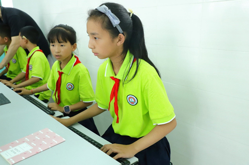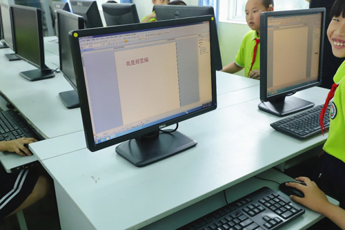 看到自己的名字第一次出現(xiàn)在電腦上,孩子們露出激動的笑容