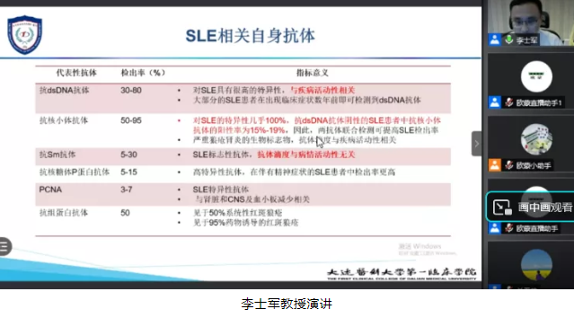 接下來(lái),大連醫(yī)科大學(xué)附屬第一醫(yī)院檢驗(yàn)科李士軍教授為我們帶來(lái)《自身免疫性疾病的實(shí)驗(yàn)室檢測(cè)》。李士軍教授從系統(tǒng)性紅斑狼瘡、系統(tǒng)性硬化病、干燥綜合征、系統(tǒng)性血管炎、自身免疫性肝病、抗磷脂抗體綜合征、自身免疫性腦炎等疾病出發(fā),介紹了與其相關(guān)的自身抗體。并指出,臨床對(duì)自身抗體檢測(cè)的要求和依賴性越來(lái)越高,嚴(yán)格控制實(shí)驗(yàn)室質(zhì)量標(biāo)準(zhǔn),能夠大大提高結(jié)果的準(zhǔn)確性。