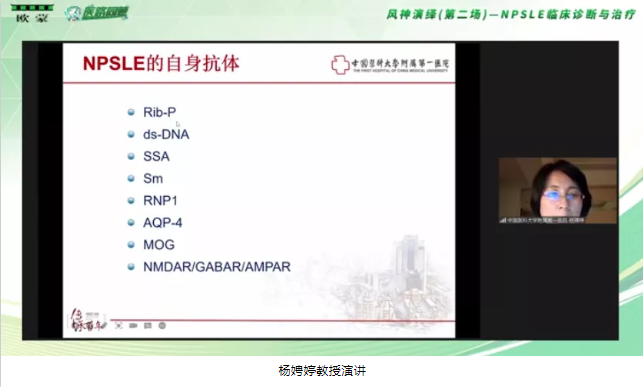 隨后由中國(guó)醫(yī)科大學(xué)附屬第一醫(yī)院風(fēng)濕免疫科主任楊娉婷教授來(lái)跟我們分享《如何理解狼瘡腦病》。楊娉婷教授從科研的角度對(duì)NPSLE的發(fā)病機(jī)制進(jìn)行了詳細(xì)解讀,楊教授從四個(gè)方面進(jìn)行了解讀:認(rèn)為神經(jīng)炎癥和腦缺血是狼瘡腦病在病理上主要的機(jī)制,以及腦屏障通透性的改變,外界的免疫異常就到了腦,可能會(huì)導(dǎo)致了狼瘡腦病。另外膠質(zhì)細(xì)胞也是神經(jīng)炎癥中的關(guān)鍵因素。除此之外腦本身存在異常的背景也會(huì)使得有些人容易導(dǎo)致狼瘡腦病。并且楊教授認(rèn)為對(duì)于狼瘡腦病我們未來(lái)還有很多工作需要做。干擾素的拮抗劑、神經(jīng)炎癥介質(zhì)的拮抗劑、以及免疫細(xì)胞活化的抑制劑和補(bǔ)體的單抗都是未來(lái)的治療靶點(diǎn)。