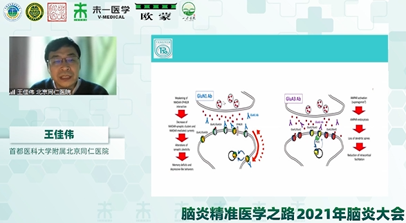 王佳偉教授做了題為《腦炎熱點(diǎn)問題的思考》的學(xué)術(shù)報(bào)告,對(duì)多種感染性疾病致病菌的發(fā)現(xiàn)、自身免疫性腦炎抗體分類對(duì)治療的啟示、谷氨酸受體腦炎致病機(jī)制及分類等熱點(diǎn)問題進(jìn)行介紹;對(duì)自身免疫性腦炎癲癇和自身免疫性腦炎的急性癥狀癲癇發(fā)作概念從多方面進(jìn)行了區(qū)分和解釋;對(duì)國(guó)際上免疫檢查點(diǎn)抑制劑(ICIs)、副腫瘤、炎性因子、腸道菌群、新冠病毒、疫苗等與自身免疫性腦炎相關(guān)的研究熱點(diǎn)進(jìn)行了梳理及報(bào)告,為腦炎的精準(zhǔn)診斷和個(gè)體化治療帶來啟發(fā)。