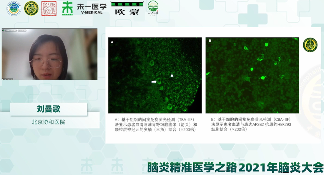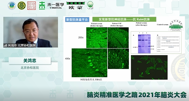 自身免疫性腦炎相關(guān)抗體作為診斷標(biāo)記物在臨床診斷中起著至關(guān)重要的作用,但現(xiàn)在仍有一些抗體未被發(fā)現(xiàn),關(guān)鴻志教授以《新型自免腦炎相關(guān)抗體的研發(fā)》為題進(jìn)行學(xué)術(shù)報(bào)告。關(guān)教授回顧了抗NMDAR腦炎相關(guān)抗體的發(fā)現(xiàn)歷程,介紹了需重視基于組織基質(zhì)的TBA法檢測(cè),根據(jù)TBA檢測(cè)的特異性熒光信號(hào)的提示,報(bào)道了全球第3例抗PKC-γ抗體和抗Homer3抗體相關(guān)小腦性共濟(jì)失調(diào),同時(shí)通過與中科院王晶教授團(tuán)隊(duì)合作,歷時(shí)2年的研究,報(bào)道發(fā)現(xiàn)了抗Rab6抗體,這為研發(fā)新型自免腦相關(guān)抗體帶來了啟發(fā),增強(qiáng)了國(guó)內(nèi)學(xué)者進(jìn)行創(chuàng)新性研究的信心。最后,關(guān)教授指出發(fā)現(xiàn)和確認(rèn)腦炎新表型,是發(fā)現(xiàn)新疾病和新抗體的基礎(chǔ),同時(shí)結(jié)合穩(wěn)定的技術(shù)平臺(tái)是新抗體研發(fā)的重要條件,但新發(fā)現(xiàn)的抗體在臨床中應(yīng)用的意義還需進(jìn)一步評(píng)估。新抗體的發(fā)現(xiàn)為自身免疫性腦炎的診斷和未來的治療帶來重要提示,使國(guó)內(nèi)學(xué)者對(duì)自身免疫性腦炎相關(guān)抗體的研究又向前邁進(jìn)了一步。