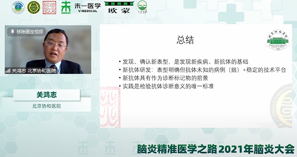 會(huì)議閉幕式上,關(guān)鴻志教授對(duì)本次會(huì)議進(jìn)行總結(jié)。關(guān)教授指出,本屆大會(huì)大咖云集,學(xué)術(shù)報(bào)告精彩紛呈,多位神經(jīng)領(lǐng)域?qū)<覍?duì)感染性腦炎、自身免疫性腦炎、人工智能體系搭建等腦炎最新研究進(jìn)展進(jìn)行分享,體現(xiàn)了抗體檢測(cè)技術(shù)、二代測(cè)序技術(shù)、影像學(xué)等在腦炎臨床診斷中的重要作用。自身免疫性腦炎臨床表現(xiàn)錯(cuò)綜復(fù)雜,在臨床診斷上還需要多學(xué)科、多平臺(tái)相結(jié)合,不斷向腦炎精準(zhǔn)診斷時(shí)代邁進(jìn)。