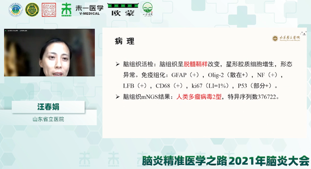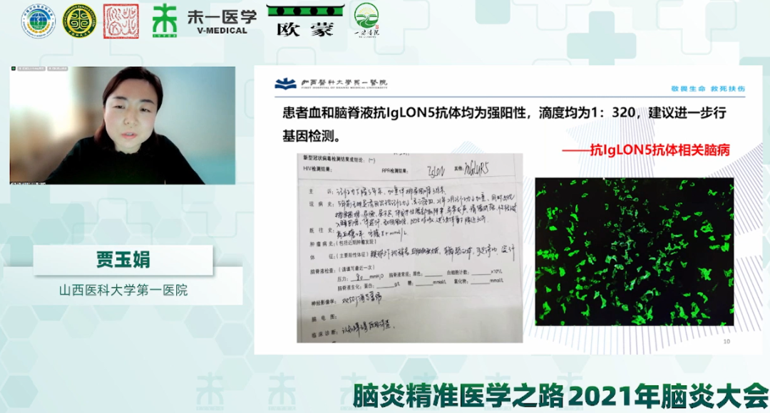 在病例分享環(huán)節(jié),山東省立醫(yī)院汪春娟博士介紹了一例根據(jù)腦脊液mNGS及免疫功能評(píng)價(jià)等輔助檢查結(jié)果確診為進(jìn)行性多灶性白質(zhì)腦病的病例;北京協(xié)和醫(yī)院劉曼歌博士分享了基于TBA法實(shí)驗(yàn)結(jié)果發(fā)現(xiàn)一例與AP3B2抗體相關(guān)的自身免疫性小腦性共濟(jì)失調(diào)的病例;山西醫(yī)科大學(xué)第一醫(yī)院賈玉娟博士以《“一紙?jiān)V求”的感悟》為題,結(jié)合在臨床中的工作,分享一例抗IgLON5抗體相關(guān)腦病的病例,根據(jù)臨床癥狀對(duì)特殊抗體進(jìn)行檢測(cè),體現(xiàn)了臨床與實(shí)驗(yàn)室密切結(jié)合的重要性。