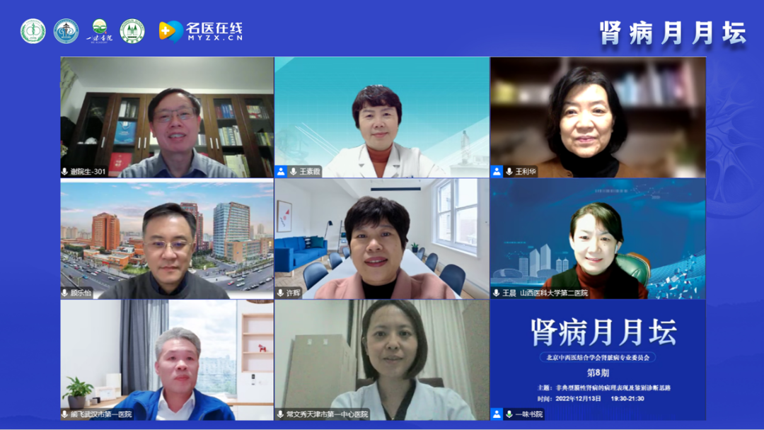 疫情可能影響大家相聚,但阻止不了學術交流,“腎病月月壇”第8期如期而至。謝教授代表北京中西醫(yī)結(jié)合學會腎臟病專業(yè)委員會對各位專家、各位同仁及各位朋友出席本期“腎病月月壇”表示熱烈的歡迎和衷心的感謝。