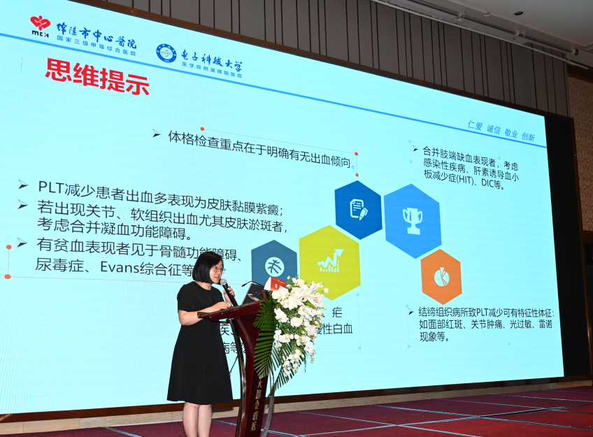 陳曦老師進(jìn)行了題為“一波三折的血小板”的病例匯報(bào),主要從病例簡介、病史、相關(guān)檢查、診斷思路、治療過程等幾個(gè)大方面進(jìn)行了深入細(xì)致地剖析。陳老師通過自己多年的臨床實(shí)踐,精心篩選了一個(gè)特殊病例,與大家進(jìn)行詳細(xì)的解析,如抽絲剝繭般將雜亂無序地蛛絲馬跡,梳理成一條條思維清晰、邏輯縝密的臨床診療思路,多維度地拓寬了臨床思維。最后,指出《2020版中國成人血小板減少癥診療專家共識》里明確提出,對血小板減少癥的診療應(yīng)注重病因診斷,比如,要詳細(xì)明確具有針對性的病史詢問和檢查,仔細(xì)詢問既往史、用藥史、家族史等信息。除此之外,完善相關(guān)實(shí)驗(yàn)室檢查,尤其免疫學(xué)相關(guān)檢查對于血小板減少癥的診療也意義重大。
