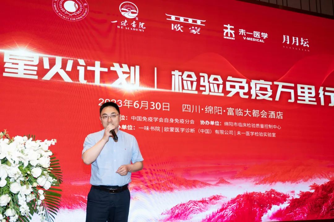 2023年6月30日,由中國免疫學(xué)會自身免疫分會主辦,綿陽市臨床檢驗(yàn)質(zhì)量控制中心協(xié)辦,一味書院、歐蒙醫(yī)學(xué)診斷(中國)有限公司、未一醫(yī)學(xué)檢驗(yàn)實(shí)驗(yàn)室聯(lián)合承辦的“星火計(jì)劃-檢驗(yàn)免疫萬里行”系列活動首站,在四川綿陽成功舉辦。該系列活動自2023年6月起至12月計(jì)劃舉辦8場。本項(xiàng)目旨在推動臨床免疫和檢驗(yàn)的結(jié)合發(fā)展,提高免疫診斷技術(shù)在臨床上的應(yīng)用水平,為患者提供更好的服務(wù)。項(xiàng)目形式包括學(xué)術(shù)講座、病例分享、專家點(diǎn)評、熱點(diǎn)討論等。