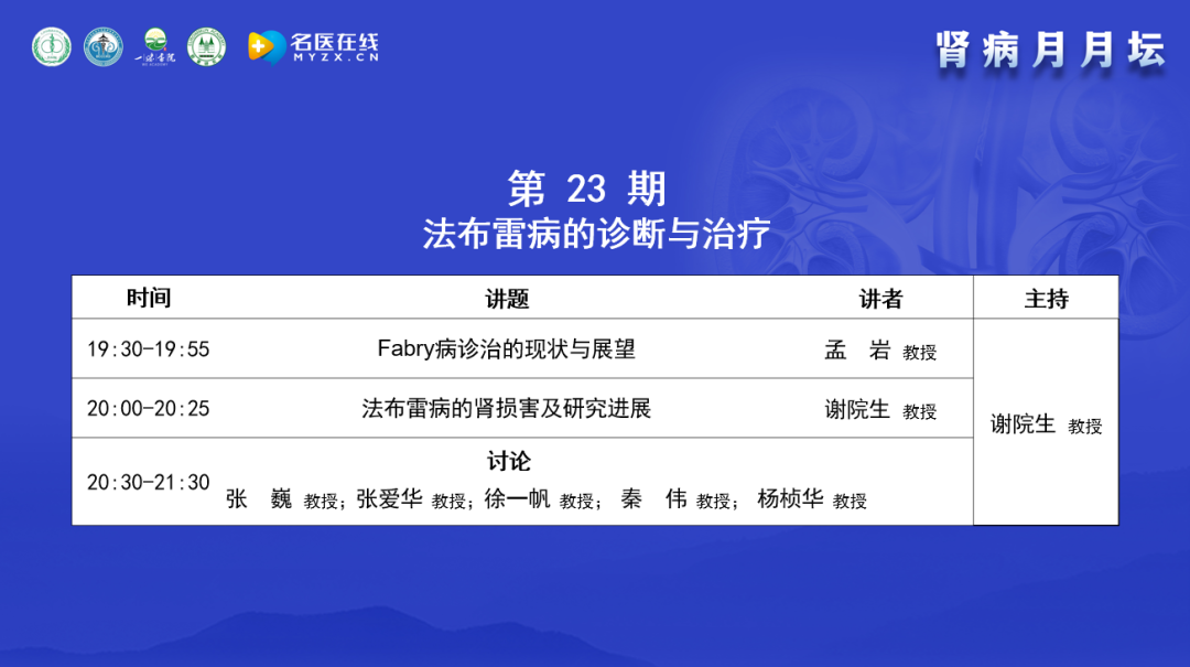 今天的主題是法布雷病的診斷與治療,邀請(qǐng)了在該領(lǐng)域有很深造詣的專(zhuān)家進(jìn)行交流。