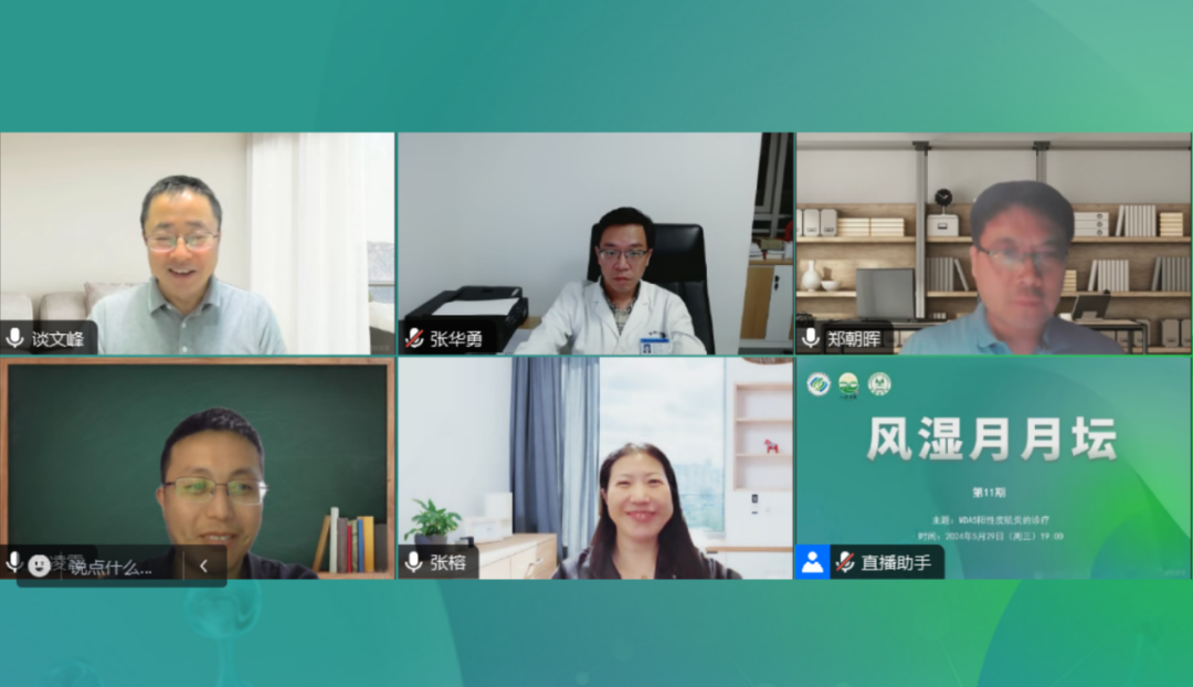 2024年5月29日,由江蘇省研究型醫(yī)院學會和一味書院主辦的《風濕月月壇(第11期)—MDA5陽性皮肌炎的診療》于線上成功舉行。本次論壇由南京醫(yī)科大學第一附屬醫(yī)院談文峰教授擔任大會主席,江蘇省人民醫(yī)院徐凌霄教授、中國醫(yī)科大學附屬第一醫(yī)院張榕教授作為講課嘉賓,南京大學醫(yī)學院附屬鼓樓醫(yī)院張華勇教授、空軍軍醫(yī)大學第一附屬醫(yī)院鄭朝暉教授作為本次大會的討論嘉賓。