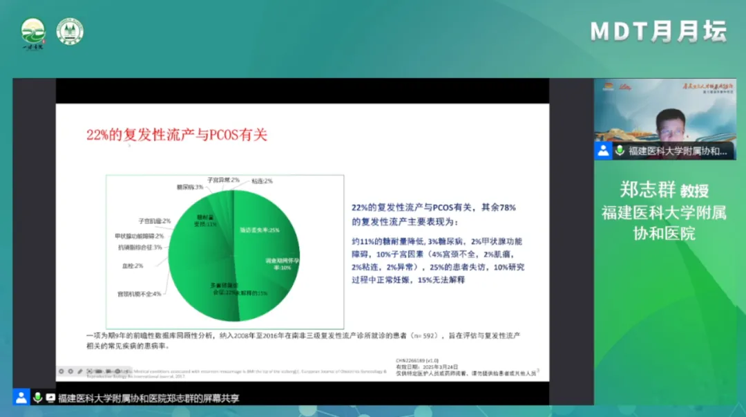 鄭教授詳細(xì)的講述了PCOS不孕癥患者先兆流產(chǎn)風(fēng)險(xiǎn)和流產(chǎn)率增加、妊娠并發(fā)癥明顯增加,并且造成子代內(nèi)分泌和心血管功能障礙,以及代謝異常等不良影響;PCOS不孕癥患者妊娠風(fēng)險(xiǎn)的主要原因是胰島素抵抗、肥胖、高雄激素血癥、黃體功能不全以及高血栓; 在備孕前調(diào)整周期,生活方式干預(yù)的同時(shí)使用地屈孕酮保證月經(jīng)高期及保護(hù)子宮內(nèi)膜;在妊娠階段使用地屈孕酮防治流產(chǎn)、改善妊娠結(jié)局。她還特別提出對(duì)HCY、高血栓、不孕癥等免疫指標(biāo)的關(guān)注和檢測(cè),給出從臨床到機(jī)制,再到檢驗(yàn)的一系列細(xì)致分享。