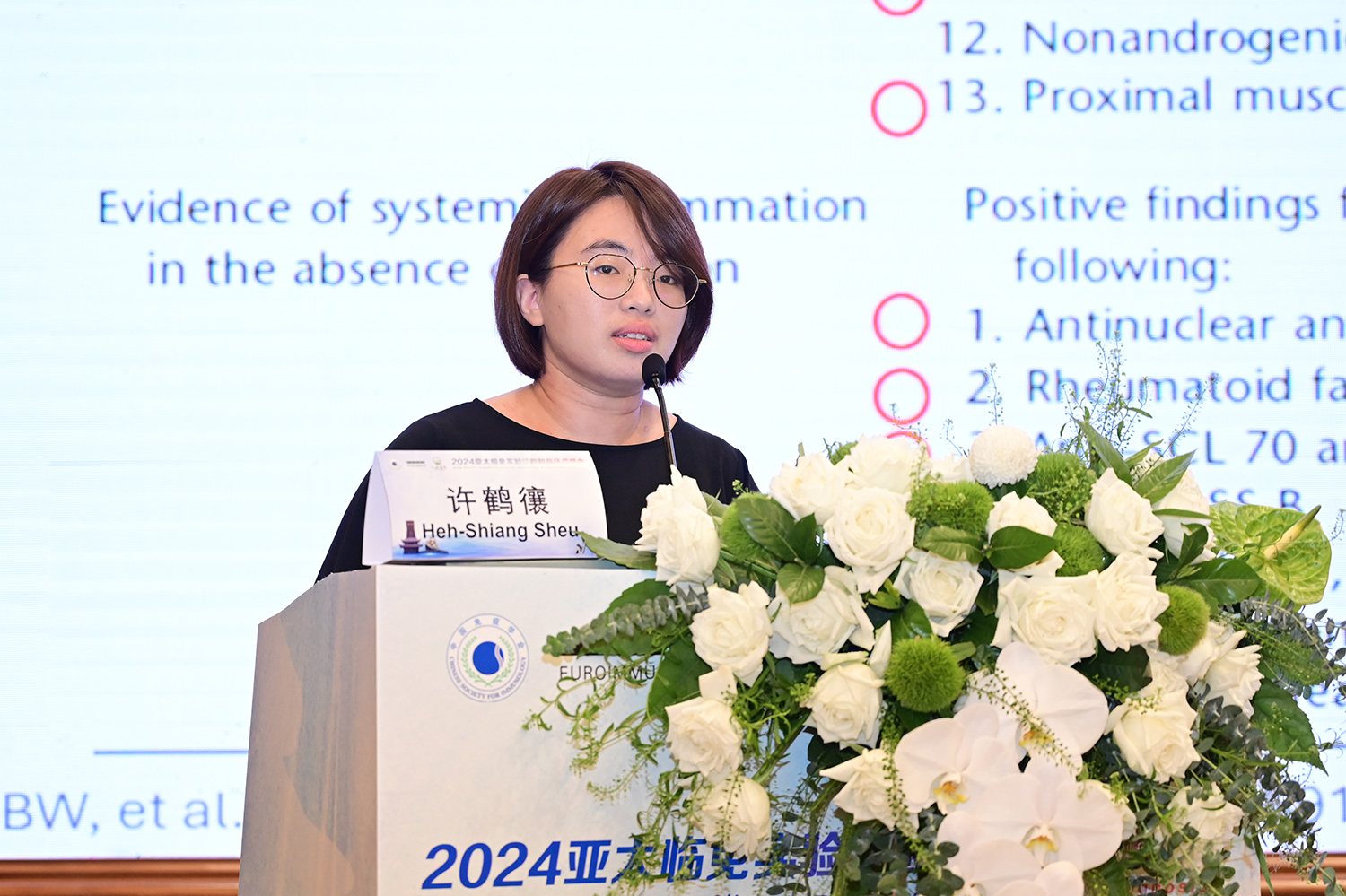 來自臺(tái)灣的許鶴忀教授首先解讀了2015年歐洲呼吸學(xué)會(huì)(ERS)/美國胸科學(xué)會(huì)(ATS)工作組提出的基于“自身免疫特征的間質(zhì)性肺炎”(IPAF)這一術(shù)語的疾病背景,明確指出IPAF分類旨在創(chuàng)建一個(gè)更加標(biāo)準(zhǔn)化、更全面的框架以及其背后歷經(jīng)的一系列疾病概念的迭代更新,如未分化結(jié)締組織?。║CTD)-ILD、肺部顯性CTD、自身免疫特征 ILD等,為我們深入理解 IPAF 奠定了理論基礎(chǔ)。IPAF 的名稱應(yīng)用于識(shí)別 IIP 患者和提示具有CTD特征,但不是確定的CTD?;趪H多個(gè)IPAF回顧性隊(duì)列研究分析顯示,關(guān)節(jié)炎、雷諾現(xiàn)象和“技工手”,是 IPAF 患者最常見的臨床特征。在血清學(xué)領(lǐng)域,ANA(抗核抗體)是最常見的抗體。在形態(tài)學(xué)上,NSIP (非特異性間質(zhì)性肺炎) 是主要模式,其次是 OP (機(jī)化性肺炎)。在預(yù)后方面,IPAF 患者的預(yù)后通常比 IPF 患者好,但與 CTD-ILD患者相比,預(yù)后更差。研究顯示,IPAF發(fā)展為系統(tǒng)性自身免疫性風(fēng)濕病的風(fēng)險(xiǎn)較非IPAF人群高14倍左右,強(qiáng)調(diào)了對 IPAF 患者進(jìn)行長期隨訪的重要性,尤其警惕符合 IPAF 血清學(xué)領(lǐng)域標(biāo)準(zhǔn)的女性患者。最近,基于意大利的一項(xiàng)研究,提出了一種稱為“具有自身免疫特征的尋常型間質(zhì)性肺炎”的分類 (UIPAF),引起了學(xué)術(shù)界廣泛關(guān)注,也從另一個(gè)維度反應(yīng)了此類疾病的異質(zhì)性、復(fù)雜性及目前分類標(biāo)準(zhǔn)的一些局限性。最后,許鶴忀教授分享了臺(tái)中榮民總醫(yī)院ILD多學(xué)科團(tuán)隊(duì)組成,以及篩查、診斷和全程管理此類疾病的臨床路徑,為亞太地區(qū)與會(huì)代表提供了寶貴的臨床經(jīng)驗(yàn)和實(shí)踐指導(dǎo)。