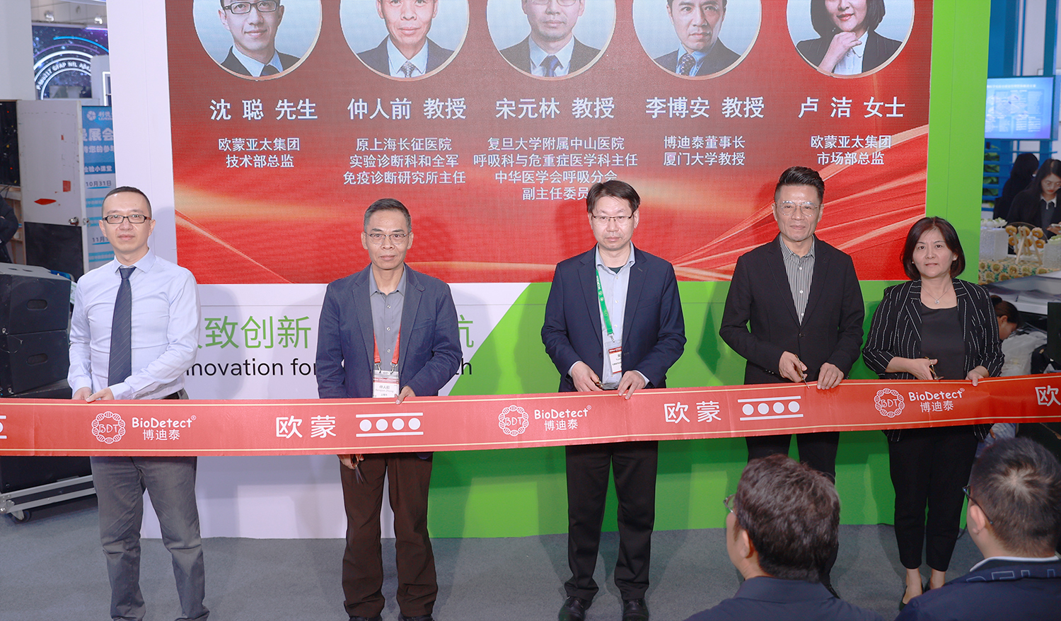 復旦大學附屬中山醫(yī)院呼吸科與危重癥醫(yī)學科主任、中華醫(yī)學會呼吸分會副主任委員宋元林教授,原上海長征醫(yī)院實驗診斷科和全軍免疫診斷研究所主任、前中國免疫學會臨床免疫分會主任委員仲人前教授,博迪泰董事長、廈門大學教授李博安先生,歐蒙亞太集團市場部總監(jiān)盧潔女士以及歐蒙亞太集團技術部總監(jiān)沈聰先生親臨現(xiàn)場,與現(xiàn)場嘉賓共同見證歐蒙呼吸道病原體檢測全方位一站式解決方案的隆重發(fā)布。