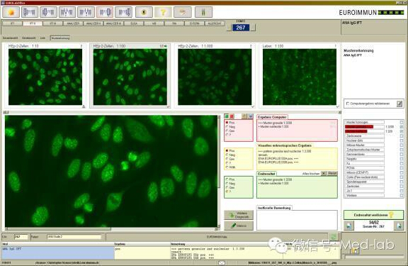 目前,EUROPattern的判讀軟件可以實(shí)現(xiàn)HEp-2/ HEp-2010熒光核型與滴度的判讀,并可對(duì)組織片拍攝高清圖片進(jìn)行保存,可滿(mǎn)足大部分醫(yī)院的檢測(cè)要求。隨著核型算法的不斷成熟,以及產(chǎn)品涵蓋面的不斷擴(kuò)大(例如判讀ANCA、dsDNA等),期待在不久的將來(lái),EUROPattern會(huì)有更加出色的表現(xiàn)。