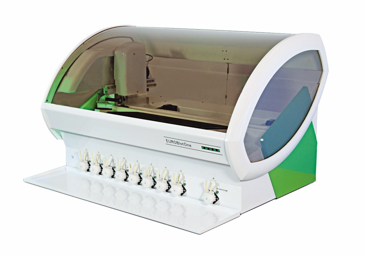 EUROBlotOne是一款緊湊型桌面設(shè)備,提供免疫印跡檢測所有流程的全自動操作,實現(xiàn)從樣本識別、樣本稀釋、全自動加樣、所有孵育及清洗過程,到自動成像、圖像分析與處理的全自動操作,最終的檢測結(jié)果分析由EUROLineScan印跡法判讀軟件完成,檢測結(jié)果可由EUROLineScan直接定制圖文報告,也可直接連接LIS或EUROLabOffice進行信息化管理。設(shè)備大幅度提高免疫印跡檢測的工作效率,實現(xiàn)全部操作的標(biāo)準(zhǔn)化。