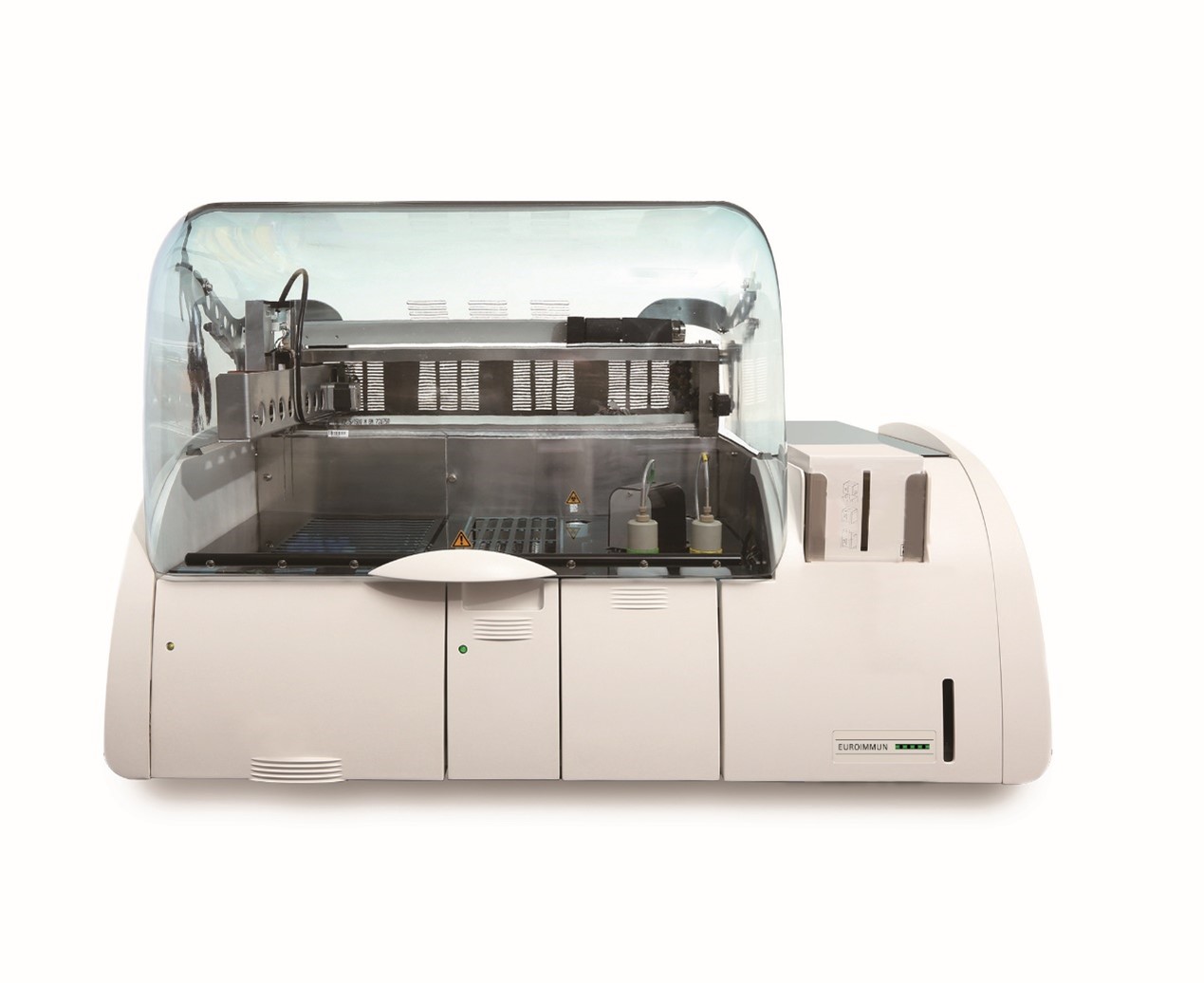 全自動化學發(fā)光免疫分析儀實現(xiàn)了樣本識別、加樣,孵育、清洗到自動結(jié)果分析的全自動一體化操作,支持多維質(zhì)控校準,最終出具結(jié)果準確可靠的檢測報告。廣泛應(yīng)用于自身免疫性疾病、激素、感染等疾病的檢測,是目前更快速、更先進的一種檢測平臺。全自動化學發(fā)光免疫分析儀能徹底解放人工,實現(xiàn)化學發(fā)光檢測的整個運行過程的無人值守,是目前臨床實驗室化學發(fā)光免疫分析檢測自動化設(shè)備中先進的檢測平臺。
